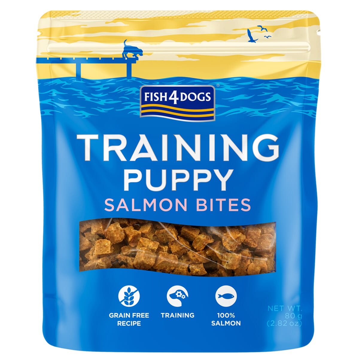 Valpträningsgodis. Doftar gott nog att fånga uppmärksamhet och är tillräckligt litet för att användas ofta under träning. Tillverkat av 100 % lax, en god proteinkälla.