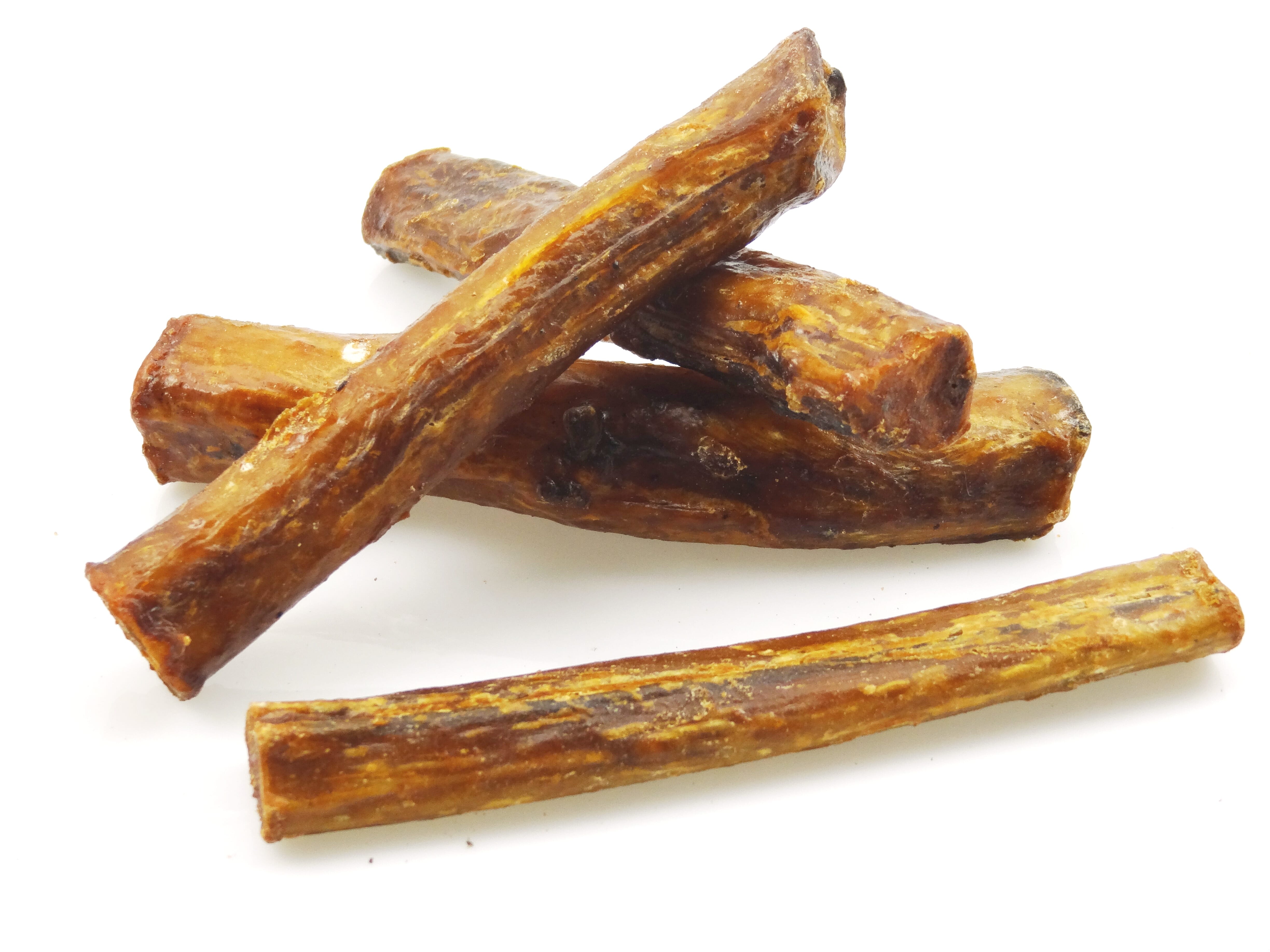 The classical in employment of the dog. The hard, elongated pieces from the ox providing long chewing fun and can be served as training of the chewing muscles as well as the cleaning of the teeth. A gentle drying method ensures that valuable trace elements retaining. The high acceptance of the ox pizzle providing the dog extra pleasure. Heat treated at 95 ° C. Compostition: 100 % Ox penis Analytical components: 92.9% crude protein, 0.9% raw fat, 0.6% raw ash, 5.6% moisture Average values: the product is subject to natural fluctuations. Feeding recommendation: At any time between meals as a treat and dental care. Reduce the complete feed accordingly.