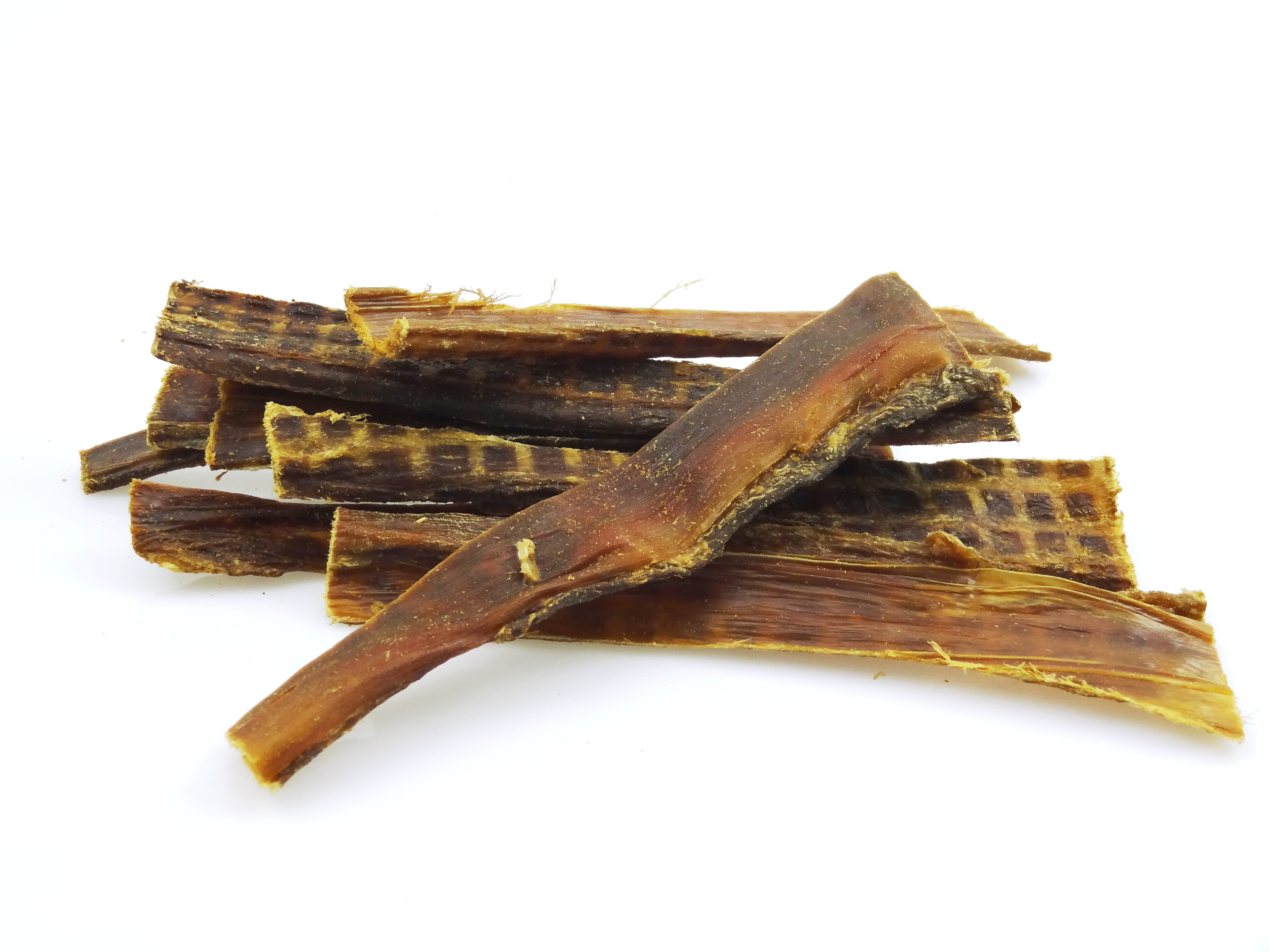 Pris er pr. eske. A tasty delicacy made from 100% fresh beef. The low-fat beef is dried and presents itself as a fine change. It serves as a light and tasty intermediate meal, as employment and a valuable protein source. Ideal for all dogs. Heat treated at 95 ° C. Composition: 100 % beef gullet Analytical components: 74.7% crude protein, 11.9% raw fat, 3.9% raw ash, 9.4% moisture · Average values: the product is subjected to natural fluctuations. Feeding recommendation: At any time between meals as a treat and dental care. Reduce the complete feed accordingly