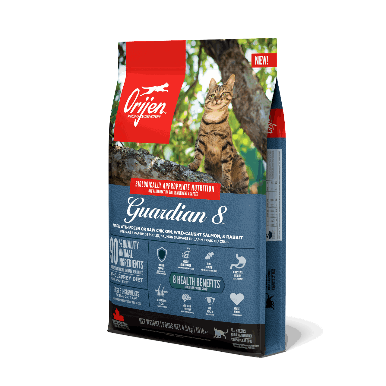 hela kikärter, hela marinblå bönor, hela ärtor, ärtstärkelse, malet miscanthusgräs, pollockolja (1 %),