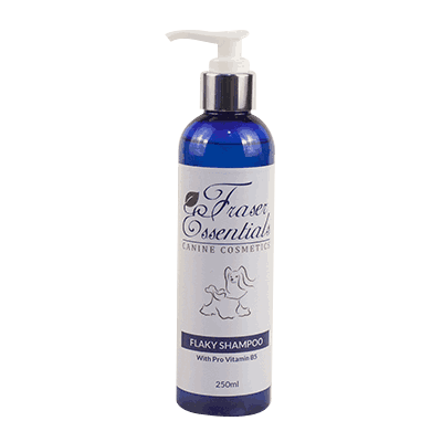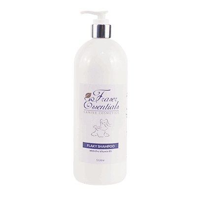 Flaky Shampoo – En skånsom sjampo formulert for å rense mens den pleier tørr hud og de hundene som viser flass gjennom pelsen. Kan brukes til alle raser, spesielt korthåret pelstyper som er kjent for å flasse.