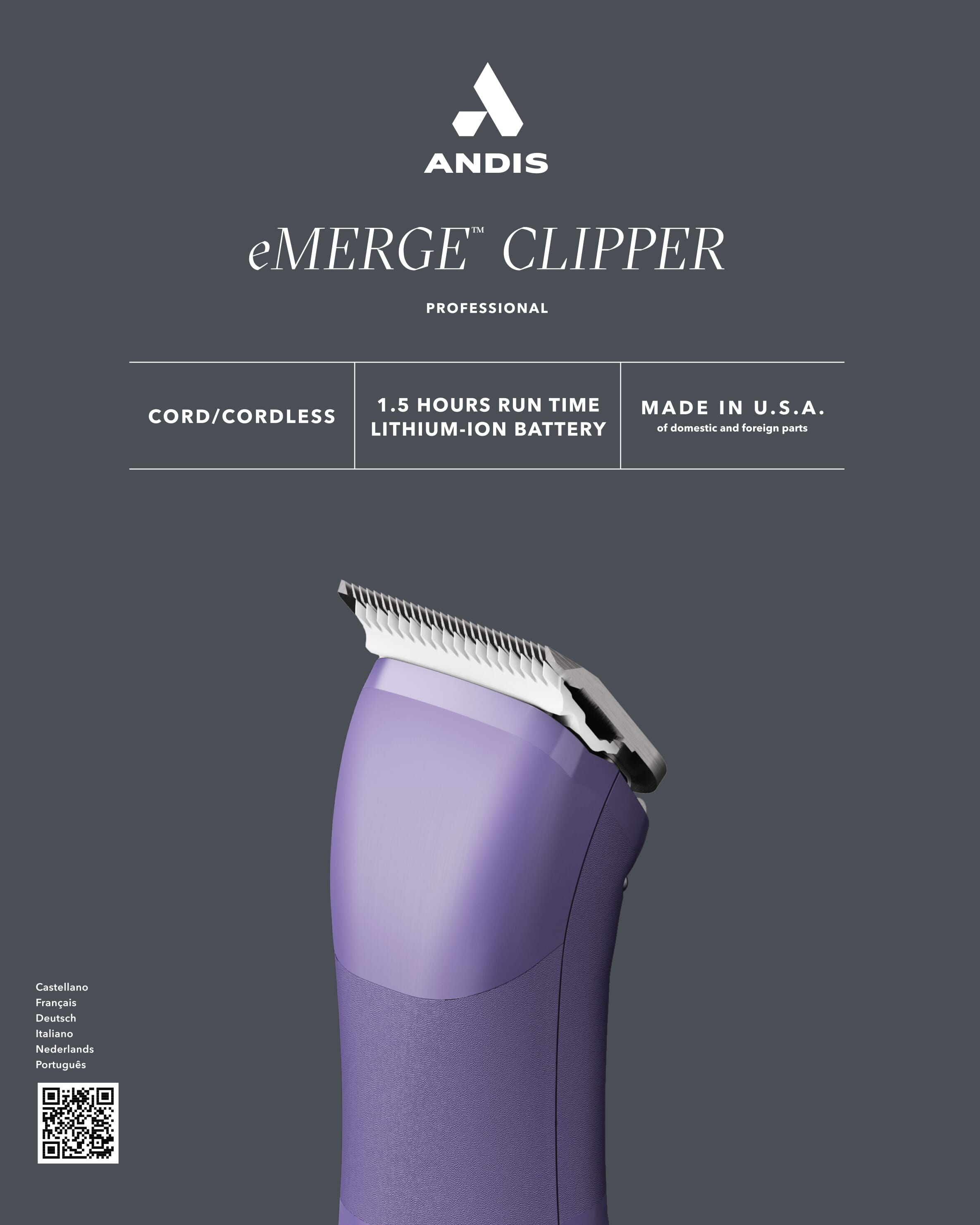 Andis eMerge m. CeramicEdge blad nr.10 Lilla