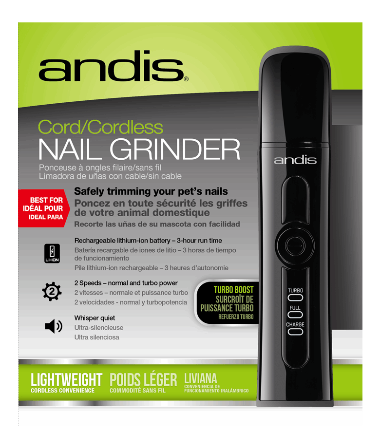 Klosliper med batteridrift. Leveres med to slipesteiner, en for grovslip og en for finslip. En hendig og effektiv sliper for trygg sliping av klør og negler. Oppladbar. Leveres med lader og ekstra stein for små detaljer. Litium-ion batteri gir 3 timers kjøretid.