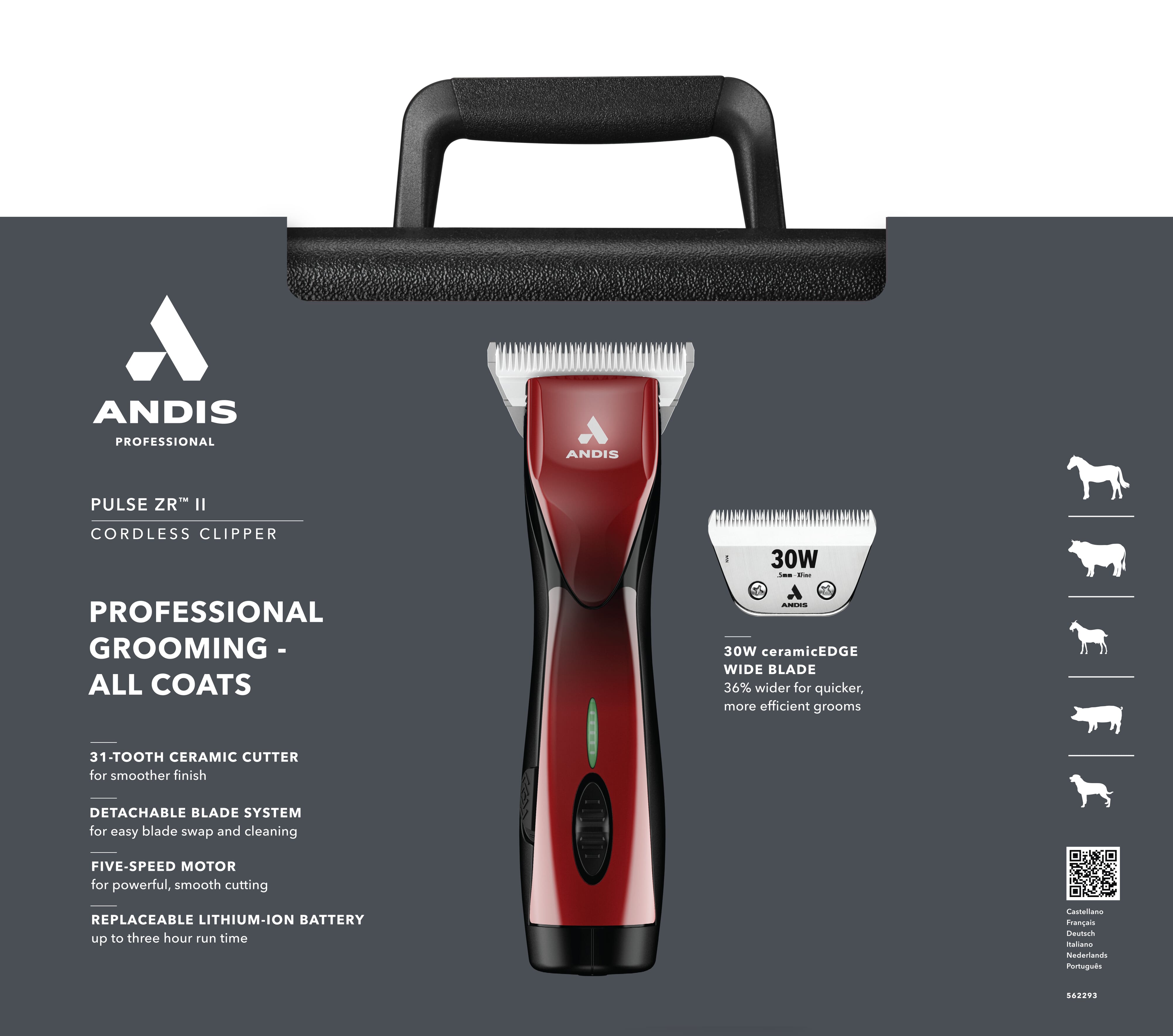 Andis Pulse ZR II m. CeramicEdge blad nr.30W Rød